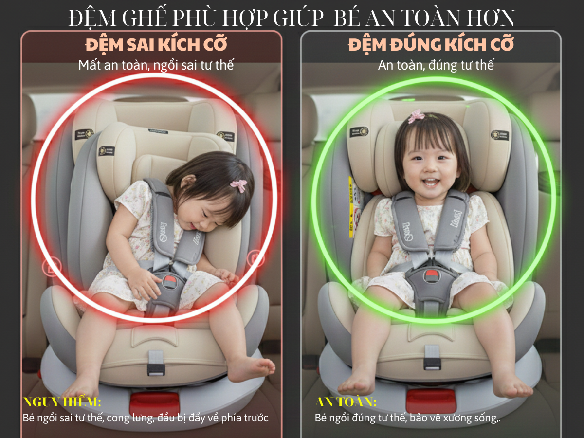 Đệm bé sai kích cỡ – khiến bé ngồi sai tư thế, mất độ an toàn