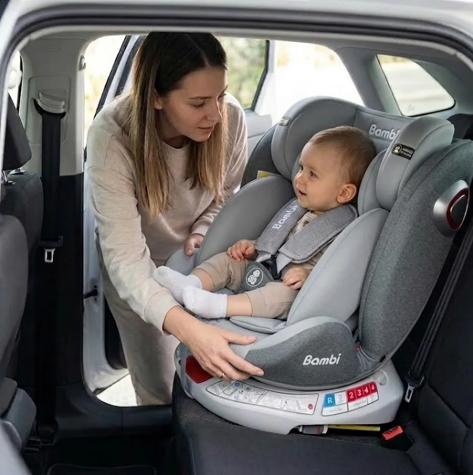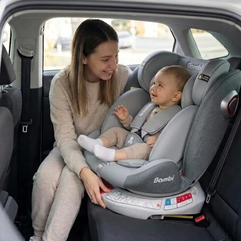 Chuyển đổi linh hoạt theo độ tuổi: Theo tiêu chuẩn an toàn, trẻ dưới 1 tuổi (hoặc dưới 13kg) cần ngồi ngược chiều xe chạy (Rear-facing). Với ghế Bambi xoay 360, bạn chỉ cần xoay ghế lại thay vì phải tháo toàn bộ hệ thống dây đai hay ISOFIX để lắp lại từ đầu khi bé lớn hơn.