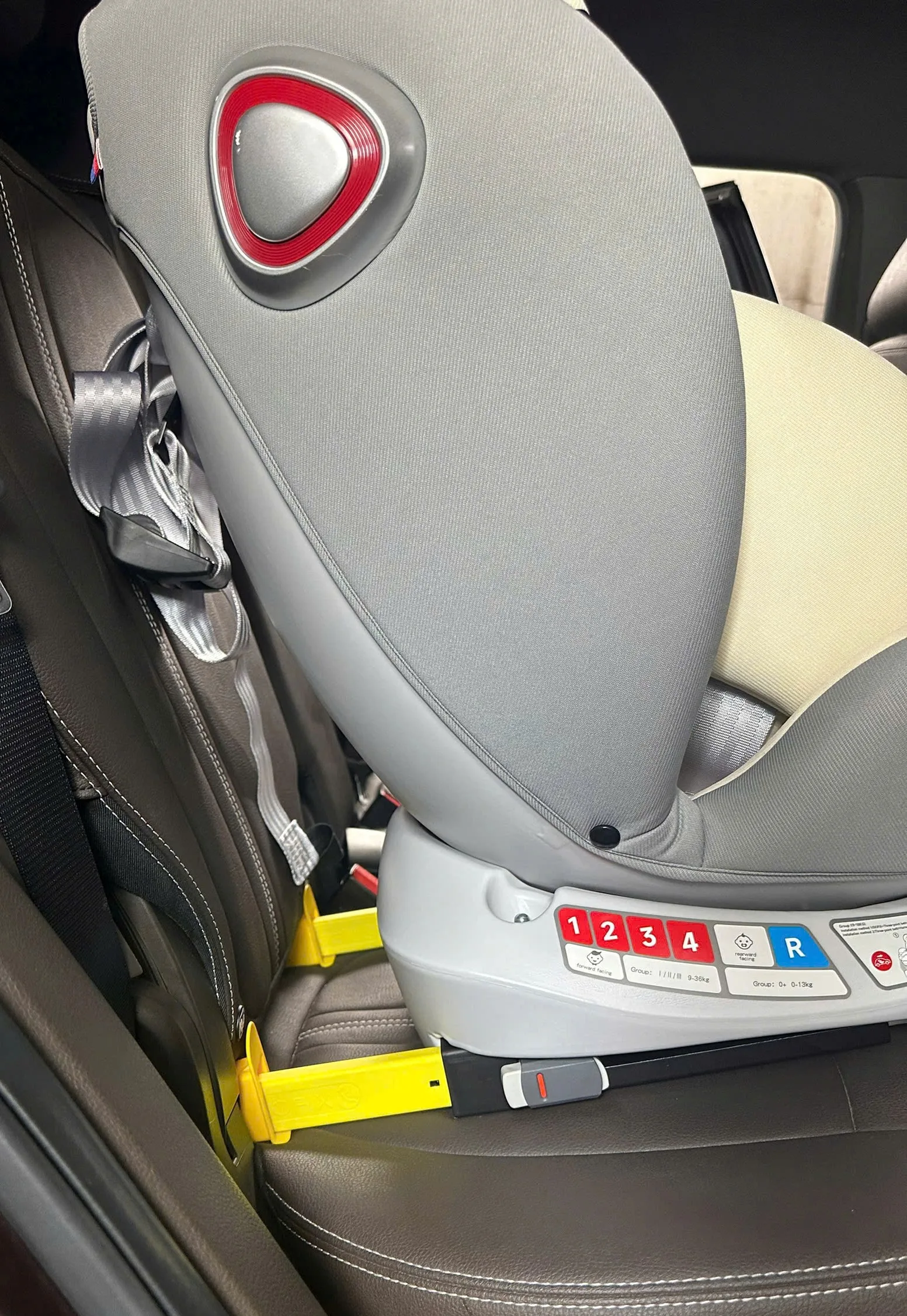 Semi-Universal (Bán phổ thông): Gồm 2 thanh cài ISOFIX và một chân chống phụ (Support Leg) tì chặt xuống sàn xe để giữ ghế cố định, chống lật/xoay khi va chạm.