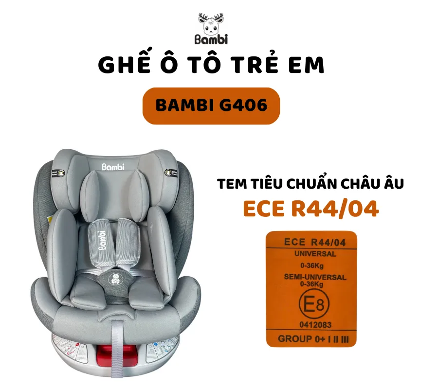 Ghế ô tô trẻ em Bambi G406 – Chiếc ghế toàn diện cho mọi gia đình. Đáp ứng đủ các tiêu chuẩn an toàn mới nhất, phương pháp lắt đặt chắc chắn dễ dàng, và có đầy đủ các tính năng tiện nghi ghế hiện đại.