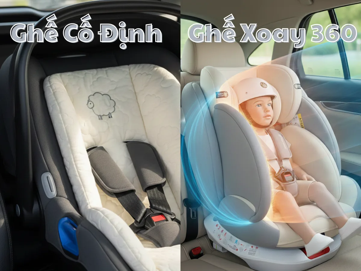Về an toàn – Ghế xoay 360° và ghế cố định đều an toàn, nhưng 360° dễ lắp đúng hơn